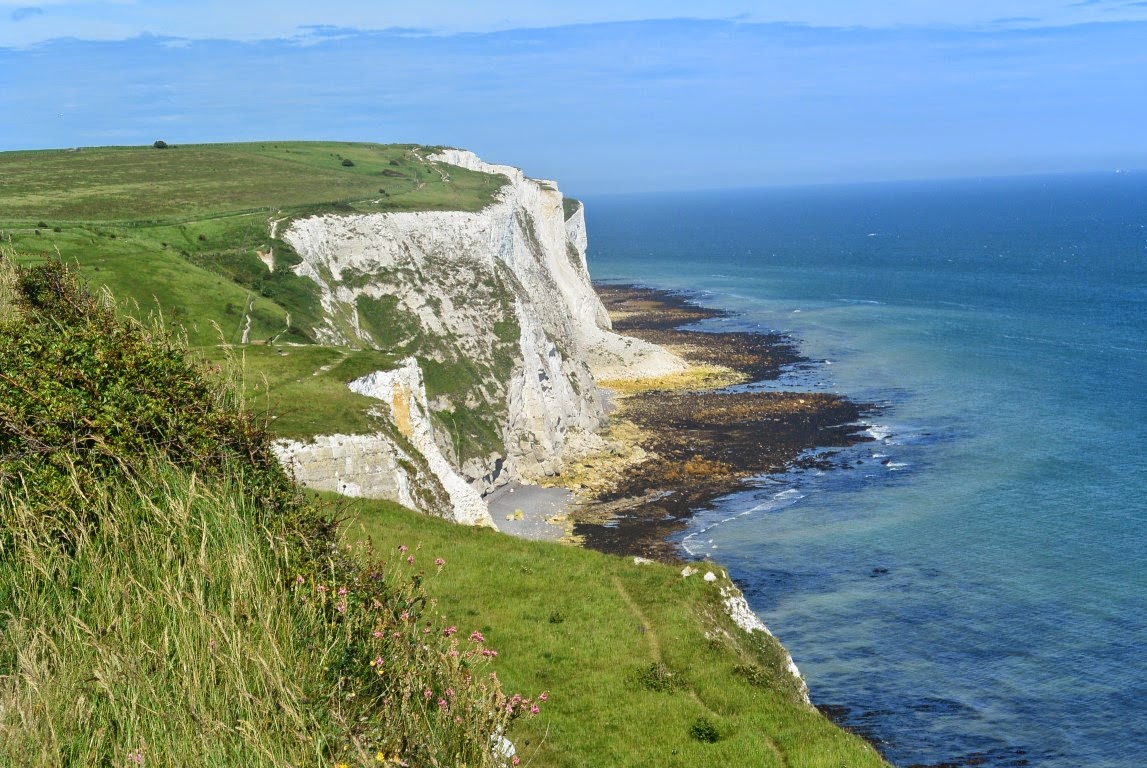 Vi fandt smertefrit ud af Gatwick og London-området og kørte til Dover hvor vi ankom ved 14-tiden engelsk tid. Vort hotel lå nærmest klods op ad "The White Cliffs of Dover" og med udsigt over havnen. Billedet nedenunder er fotograferet fra hotellets bagside. Husene man kan se er lige op ad klinterne. Der var en del måger, der holdt til der og faneme om jeg ikke også opdagede en Mallemuk der fløj frem og tilbage og også havde rede der oppe på klinten næsten ud for hotellet. Senere opdagede jeg også en, muligvis to, Vandrefalke der patruljerede kanten af klinten øverst oppe. Sikke et postyr der var.