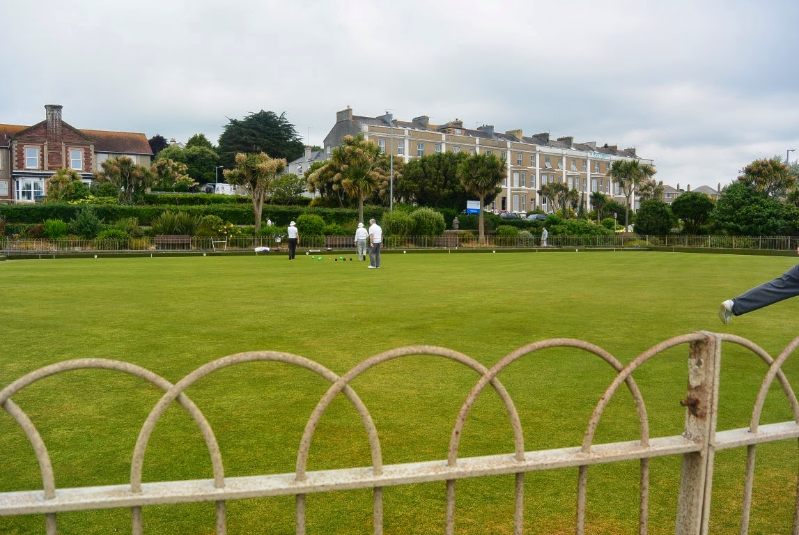 En dag gik vi fra Penzance langs kysten ud til et lille fiskerleje ved navn "Mousehole". 27 graders varme og en spadsere-tur på ca. 9 km langs landevejen der gik langs kysten. I landsbyen Newlyn passerede vi nogle mennesker, der på en flad tætklippet græsplæne spillede noget der mindede dels om bowling og dels om Petange/Boúle: