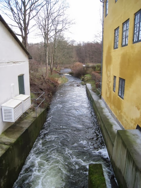 Herunder de gule bygninger. Man kan se Lillemor ved den gule gavl. Lige foran hende er der en hvid gavl. Det er her billedet af åen længere oppe i indlægget er taget fra.