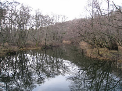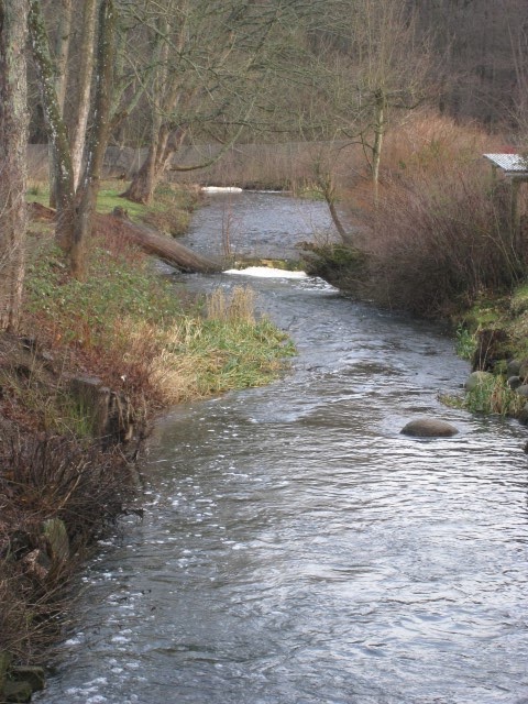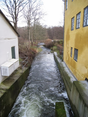 Herunder ses åen oppe fra vejen og hvor Vandhjulet i sin var placeret. Det er i dette "løb" man plejer at kunne se Vandstære her om vinteren.