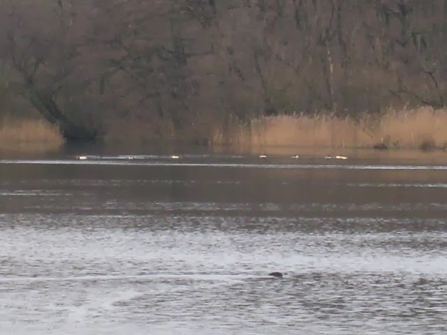 ....og lige da vi gik derfra hen til bilen, så landede der på Mølle-dammen, 6 par Stor Skallesluger. Det er prikkerne man kan se på billedet nedenunder.