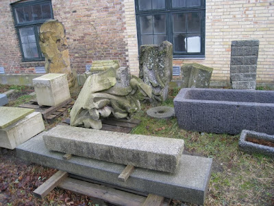 Bag knivfabriken - som indeholder kunstneratelier og broncestøberi - er der stenhuggeri. Der ligger masser af huggede - :-D - ting der, som vareprøver nærmest.
