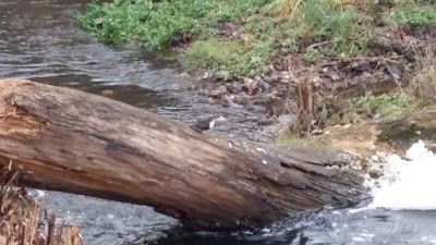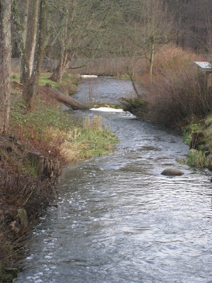 Herunder kan ses det "stryg" hvor vi normalt ser en eller flere Vandstære stå og knikse eller "svømme" i det strømmende vand. De står på de sten man kan se hist og pist eller ved den væltede træ-stamme over åen....men denne gang var der ingen Vandstære. Ærgerligt.