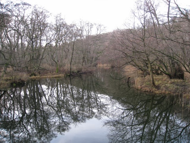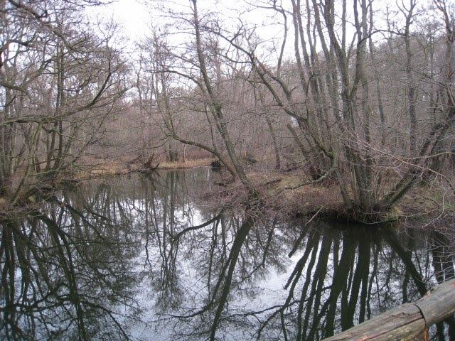 Der var ingen Isfugl denne gang, så vi gik videre over broen og fortsatte gennem skoven. Herunder kan ses et stykke af Mølleåen, der snor sig gennem skoven her.