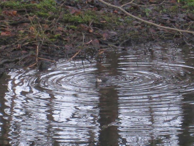 Den gamle fabrik var jo drevet ved vandmølle-hjul. Det er jo Mølleåen der går derude :-) . I et af vandmøllens mange vandløb er der altid, på denne årstid, en eller flere Vandstære. I øjeblikket er der et par stykker eller tre, men vi så kun denne ene: