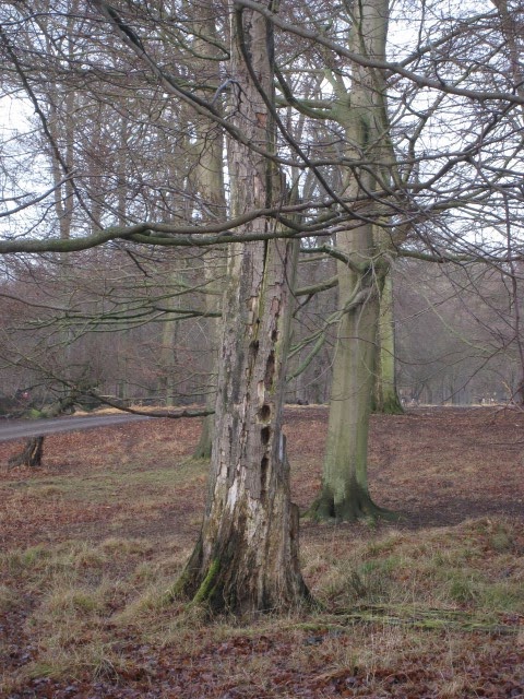 Der er ret flot på denne årstid, selvom de fleste blade er faldet af alle træerne. Det gode ved Dyrehaven er, at de træer der vælter, de får lov at ligge og rådne og det giver liv til en masse insekter. Der er også set Sortspætter ved nogen af de gamle stubbe derude.