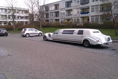 Ja, - sådan forholder det sig nu ikke lige, men da jeg havde været på biblioteket og gik ud til min bil, holdt denne Limousine på P-pladsen....Hvad fylder den ? 4-5 P-båse ?