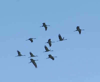 Herligt. En lille flok på 18 Traner. Dem bliver jeg aldrig træt af at se på...eller høre på.