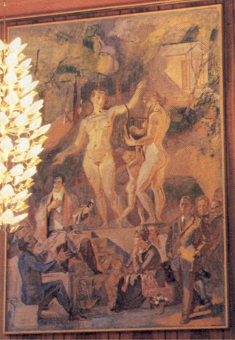 Man kan tydeligt se stilen der er den samme som loftsmaleriet ovenfor.