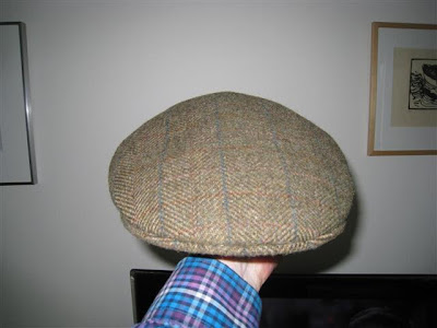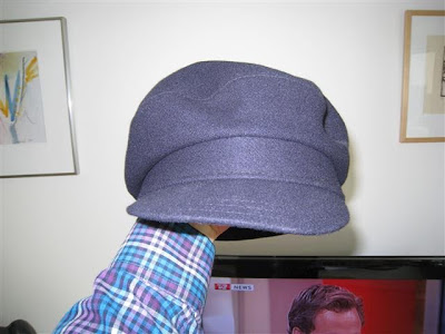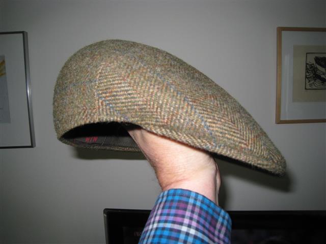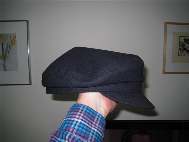 .....og også en slags gårdsanger kasket, en såkaldt Sports Cap, i 100 % ren uld er jeg indehaver af. Mørkeblå. Købt i den gamle danske Hatteforretning Petitgas beliggende på Købmagergade i København for kr. 400 for nogen år siden til afløsning af en der var blevet for slidt og som i øvrigt havde ligget på "hatte-hylden" i bilen og dermed mistet farve p.g.a. det meget sol-lys. Hattestørrelsen er 59. Fabrikatet er vistnok engelsk; mærke mangler. Indvendig er pulden betrukket med lyse-blå silke.