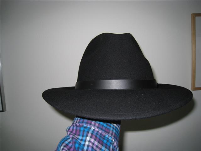 Den første er den seneste anskaffelse. En sort hat (filt ?) fra firmaet Mayser i Tyskland, men købt hos hattefirmaet Nagy-Hüte i Wien for den formidable sum af ca. kr. 875. Dejlig pasform og går mest til efterårs- og vinterbrug. Hattestørrelsen er 57.