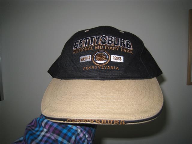 Den første er en original og officiciel Cap fra "Gettysburg National Military Park". Den erhvervede jeg i 2012 under mit 2.besøg derovre. Det er den jeg oftest går med. Bemærk, at der forrest på kanten af skyggen også står vævet/syet "Gettysburg".